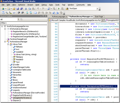 The Source Code Outliner PowerToy was created as a package using the Visual Studio SDK for Visual Studio 2008. For more information about VSX, visit the Visual Studio Extensibility Developer Center.