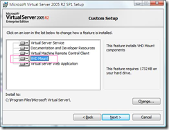From Installing Virtual Server with vhdmount only in Windows XP fails;