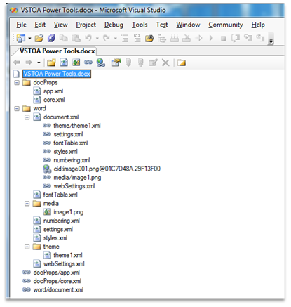 - Open any Office 2007 Open XML Package file or XPS Package file directly in Visual Studio.