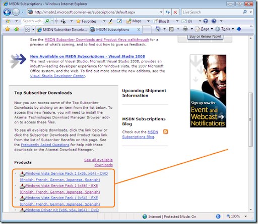 Vista SP1 RTM is now available for MSDN Subscribers (via the Top Subscribers Downloads)