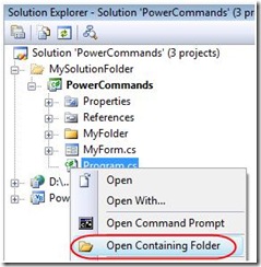 In short this is some nice to have, yet irritating when you don't, minor features and functionality. For me the Open Containing Folder and Command Prompt are the coolest. But the Edit Project File is also a nice touch (a couple steps combined into two click). The rest are pretty cool too...