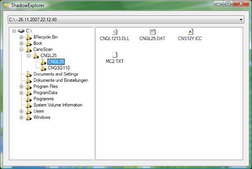 "ShadowExplorer allows you to browse the shadow copies created by the Windows® VistaTM Volume Shadow Copy Service. It's especially thought for users of the home editions, who don't have access to the shadow copies by default, but it's also useful for users of the other editions.