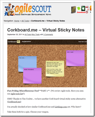 OMG! Thanks to Tim Coulter… we have another Cork board virtual sticky notes alternative: [Corkboard.me] ...